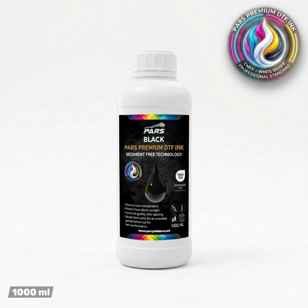 Pars Premium DTF Ink is a high-pigment, professional-grade ink designed to bring industrial printing quality to both desktop and wide-format printers. Formulated for maximum opacity and vibrant color reproduction, it ensures stunning results even on the darkest fabrics.